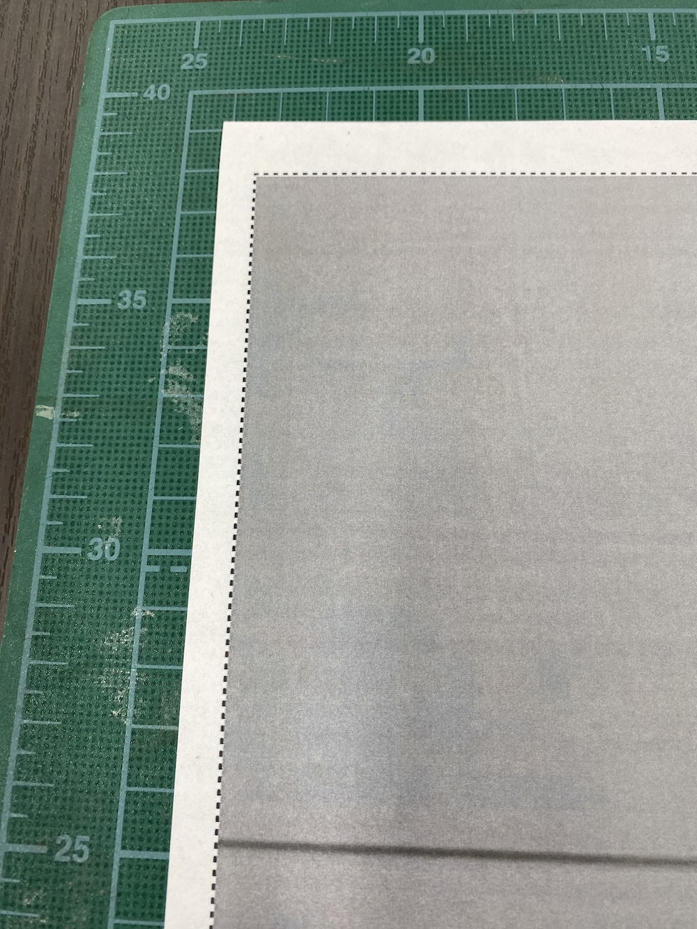点線(キリトリ線)の内側ギリギリを切り取る(点線を全て切り落とすようにする)と仕上がりがキレイになります。